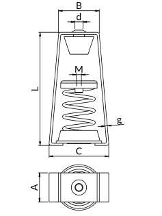 | Sarcină maximă [kN] | Deviație [mm] | Dimensiuni A [mm] | Dimensiuni B [mm] | Dimensiuni C [mm] | Dimensiuni L [mm] | Diametru d [mm] | Filet M | Marcaj pentru comandă | Număr catalog |